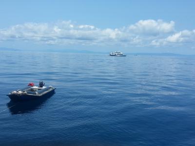 Hier gab es noch Mal eine kurze Sicherheitsunterweisung während wir auf die Suche nach wilden Duskydelphinen aufgebrochen sind.